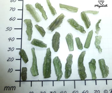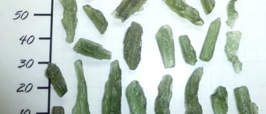 Sorgfältig geprüfte Moldavite.